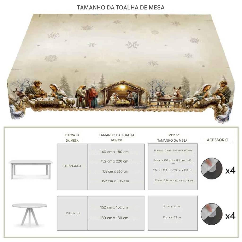 🎄 Versátil e encantadora: disponível em formatos retangulares e redondos, adaptando-se a diferentes tamanhos de mesas.