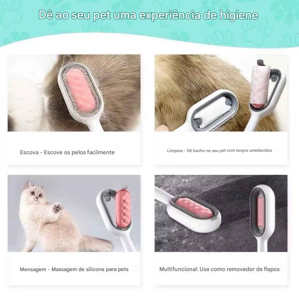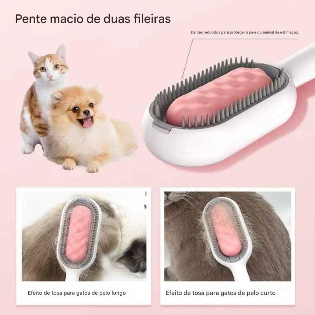 Chega de pelos pela casa, nós difíceis de tirar e sessões estressantes de escovação! Com a PetLiso – Escova Inteligente Desembaraçadora, você transforma a hora do cuidado com seu pet em um momento de carinho e bem-estar. Desenvolvida com tecnologia que respeita a pele sensível dos animais, ela remove os pelos soltos, desembaraça com facilidade e ainda ajuda a manter o pelo mais brilhante e saudável.Seu design inovador combina durabilidade, conforto e higiene, graças à estrutura resistente em ABS e silicone lavável, perfeita para o uso diário em gatos e cães de todos os portes.