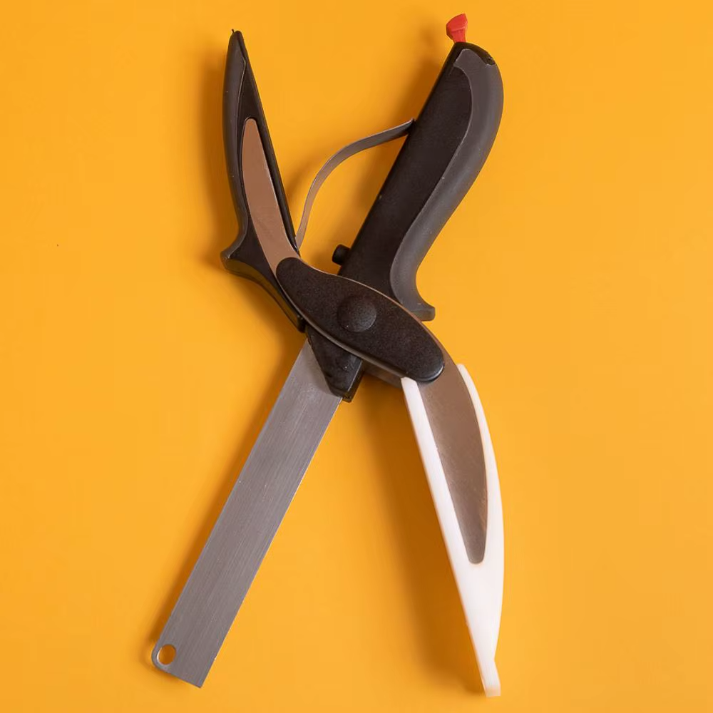 Prática, segura e moderna, ela combina tesoura e tábua de corte em um único utensílio, permitindo cortar, fatiar e picar os alimentos diretamente na panela, tigela ou prato – tudo isso sem bagunça e sem esforço.